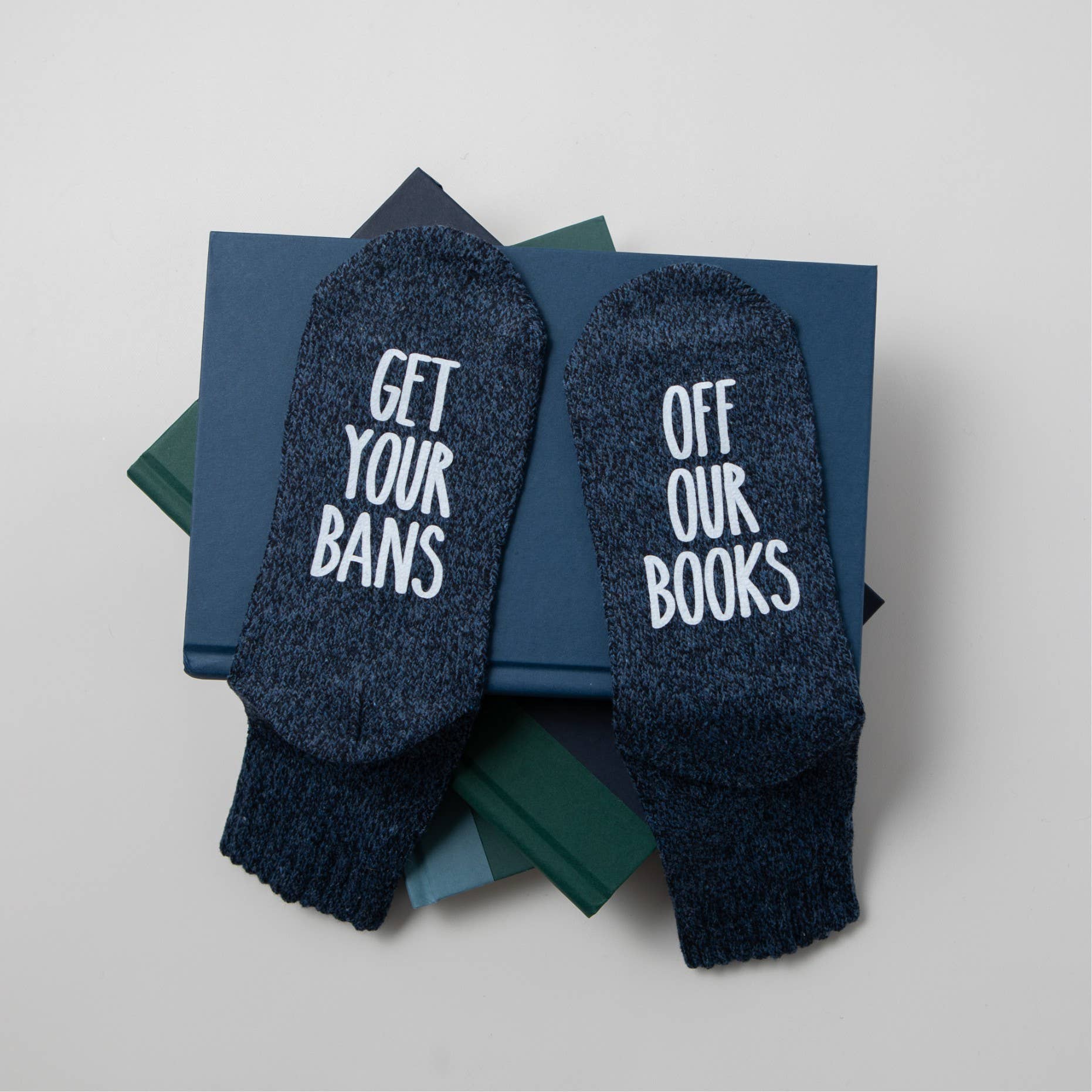 These polyester/spandex blend socks are perfect for some cozy reading this weekend. Super comfy and durable, these socks fit women's shoe sizes 4-10 and are perfect for getting your message across.