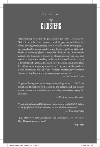 When Ann Stilwell arrives in New York City, she expects to spend her summer working as a curatorial associate at the Metropolitan Museum of Art. Instead, she finds herself assigned to The Cloisters, a gothic museum and garden renowned for its medieval art collection and its group of enigmatic researchers studying the history of divination.